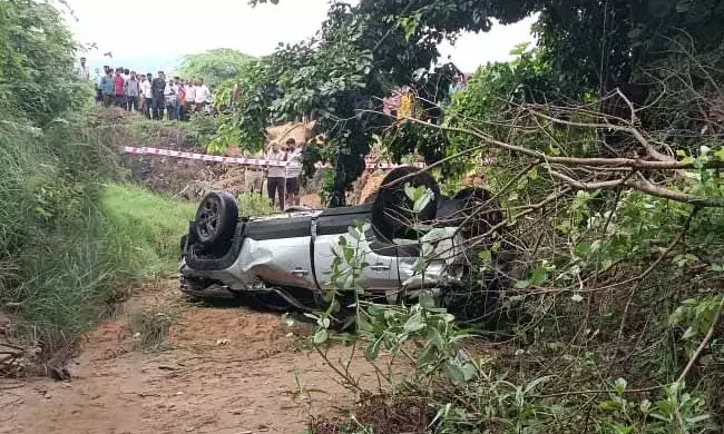 ಚಿಕ್ಕಬಳ್ಳಾಪುರ: ಚಾಲಕನ ನಿಯಂತ್ರಣ ತಪ್ಪಿ ತಗ್ಗು ಪ್ರದೇಶಕ್ಕೆ ಉರುಳಿದ ಕಾರು; ಮೂವರು ಮೃತ್ಯು
