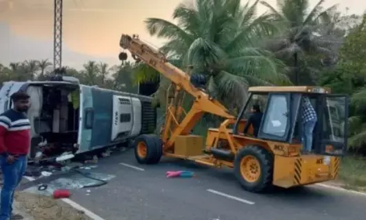 ಮಂಡ್ಯ | ಖಾಸಗಿ ಬಸ್ ಉರುಳಿ ಬಿದ್ದು 30 ಮಂದಿಗೆ ಗಾಯ