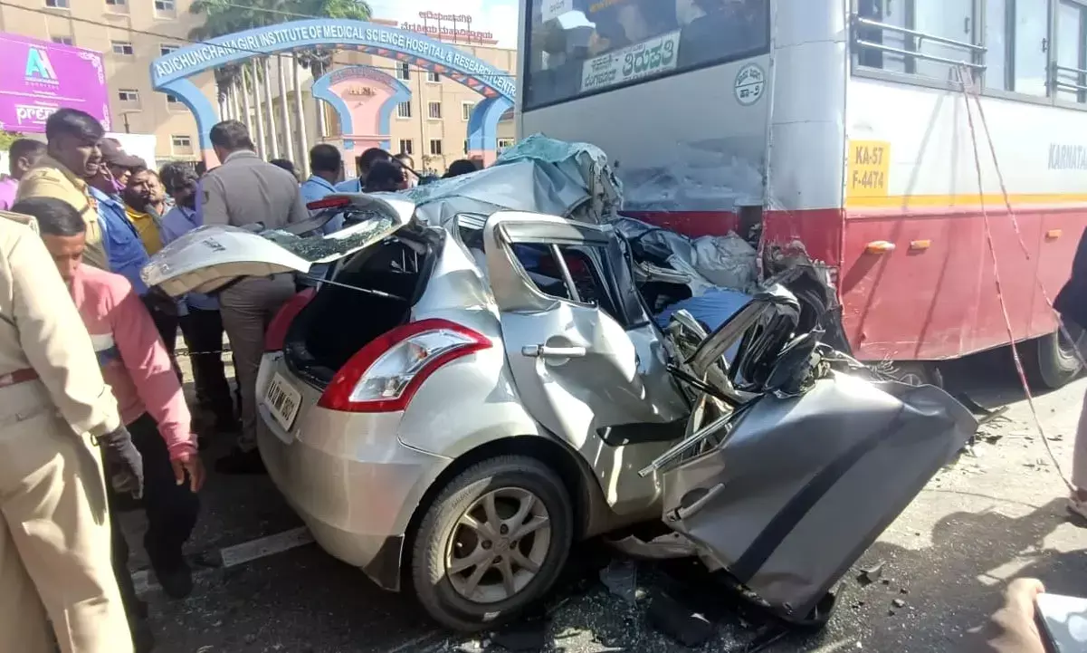 ಮಂಡ್ಯ | ನಿಲ್ಲಿಸಿದ್ದ ಬಸ್ಸಿಗೆ ಕಾರು ಢಿಕ್ಕಿ: ನಾಲ್ವರು ಮೃತ್ಯು