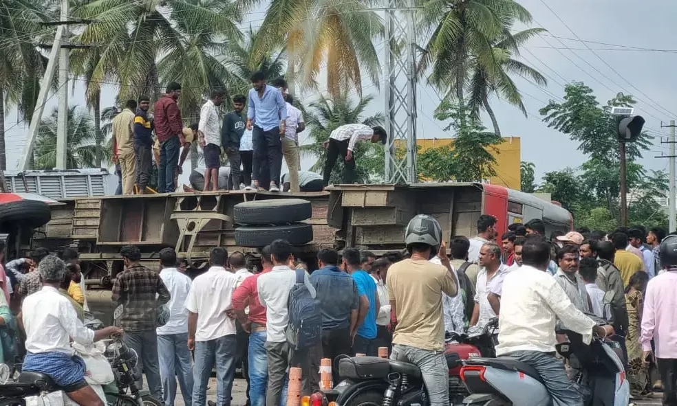ಮಂಡ್ಯ | ಕೆಎಸ್ಸಾರ್ಟಿಸಿ ಬಸ್ ಪಲ್ಟಿ: 35ಕ್ಕೂ ಅಧಿಕ ಪ್ರಯಾಣಿಕರಿಗೆ ಗಾಯ