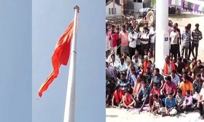 ಗ್ರಾಮದ ರಂಗ ಮಂದಿರ ಬಳಿ ನೂತನವಾಗಿ ನಿರ್ಮಿಸಿದ್ದ 108 ಅಡಿ ಎತ್ತರದ ಧ್ವಜ ಸ್ತಂಭದಲ್ಲಿದ್ದ ಕೇಸರಿ ಬಾವುಟವನ್ನು ಸಂಘಪರಿವಾರ ಕಾರ್ಯಕರ್ತರು, ಗ್ರಾಮಸ್ಥರ ವಿರೋಧದ ನಡುವೆಯೂ ಇಳಿಸಲಾಗಿದೆ ಎಂದು ತಿಳಿದು ಬಂದಿದೆ.
