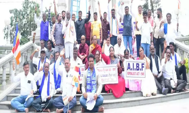 ಮೈಸೂರು, ಆ.13 : ಬುದ್ಧಗಯಾ ಮಹಾ ಬೋಧಿ ಮಹಾ ವಿಹಾರ ಮುಕ್ತಿ ಆಂದೋಲನ ಸಮಿತಿ ವತಿಯಿಂದ 1949ರ ಬುದ್ದಗಯಾ ಟೆಂಪಲ್ ಕಾಯ್ದೆ ರದ್ದತಿ ಮತ್ತು ಬಿಹಾರದಲ್ಲಿರುವ ಬುದ್ಧಗಯಾ ಮಹಾಬೋಧಿ ಮಹಾವಿಹಾರ ಸಂಪೂರ್ಣ ಬೌದ್ಧರ ಆಡಳಿತಕ್ಕೆ ಒಳಪಡಿಸಲು ಒತ್ತಾಯಿಸಿ ಪುರಭವನದ ಡಾ.ಬಿ.ಆರ್.ಅಂಬೇಡ್ಕರ್ ಪ್ರತಿಮೆ ಬಳಿ ಬುಧವಾರ ಧರಣಿ ನಡೆಯಿತು.