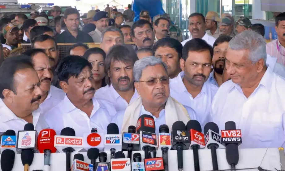 ದಕ್ಷಿಣ ಶಿಕ್ಷಕರ ಕ್ಷೇತ್ರದ ಕಾಂಗ್ರೆಸ್ ಅಭ್ಯರ್ಥಿ ಮರಿತಿಬ್ಬೇಗೌಡ ಅವರ ನಾಮಪತ್ರ ಸಲ್ಲಿಕೆಗೆ ಮಂಗಳವಾರ ಮೈಸೂರಿಗೆ ಅಗಮಿಸಿದ ಸಿಎಂ ಸಿದ್ಧರಾಮಯ್ಯ ಮಂಡಕಳ್ಳಿ ವಿಮಾನ ನಿಲ್ದಾಣದಲ್ಲಿ ಮಾಧ್ಯಮದವರೊಂದಿಗೆ ಮಾತನಾಡಿದರು.