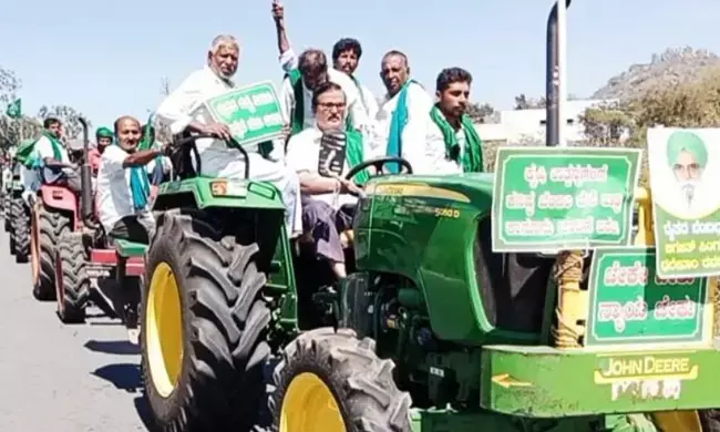 ದೆಹಲಿ ರೈತರ ಹೋರಾಟ ಬೆಂಬಲಿಸಿ ಟ್ರ್ಯಾಕ್ಟರ್ ರ್ಯಾಲಿ ನಡೆಸಿದ ರೈತರು