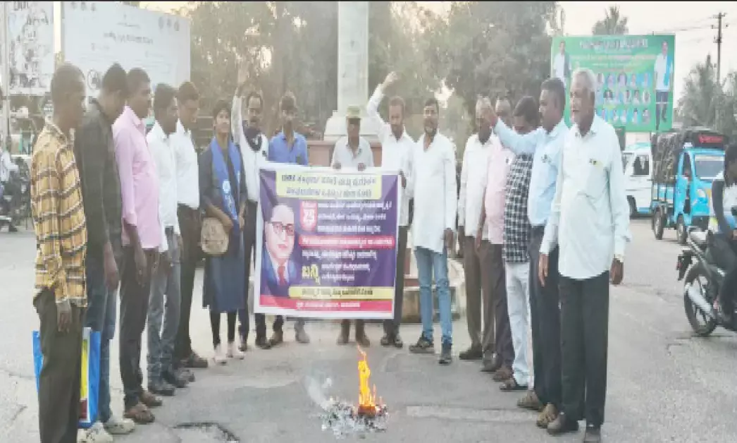 ಹುಣಸೂರು | ಪ್ರಗತಿಪರ ಸಂಘಟನೆಗಳಿಂದ ಮನುಸ್ಮೃತಿ ದಹನ