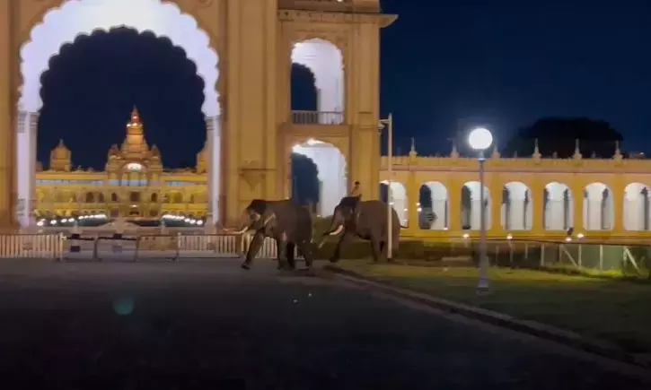 ಮೈಸೂರು | ದಸರಾ ಗಜಪಡೆಗಳ ಕಾದಾಟ: ರಸ್ತೆಯತ್ತ ಓಟ; ಸಾರ್ವಜನಿಕರಿಗೆ ದಿಗಿಲು