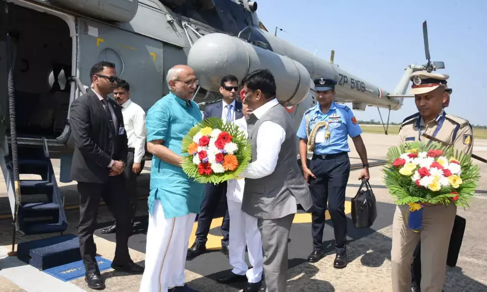 ಮೈಸೂರು : ಮೈಸೂರಿಗೆ ಆಗಮಿಸಿದ ಉಪರಾಷ್ಟ್ರಪತಿ ಸಿ.ಪಿ.ರಾಧಾಕೃಷ್ಣನ್ ಅವರನ್ನು ಮಂಡಕಳ್ಳಿ ವಿಮಾನ ನಿಲ್ದಾಣದಲ್ಲಿ ರವಿವಾರ ರಾಜ್ಯಪಾಲ ಥಾವರ್ ಚಂದ್ ಗೆಹ್ಲೋಟ್, ಸಮಾಜ ಕಲ್ಯಾಣ ಹಾಗೂ ಜಿಲ್ಲಾ ಉಸ್ತುವಾರಿ ಸಚಿವ ಡಾ.ಎಚ್.ಸಿ.ಮಹದೇವಪ್ಪ ಪುಷ್ಪ ಗುಚ್ಛ ನೀಡಿ ಸ್ವಾಗತಿಸಿದರು.