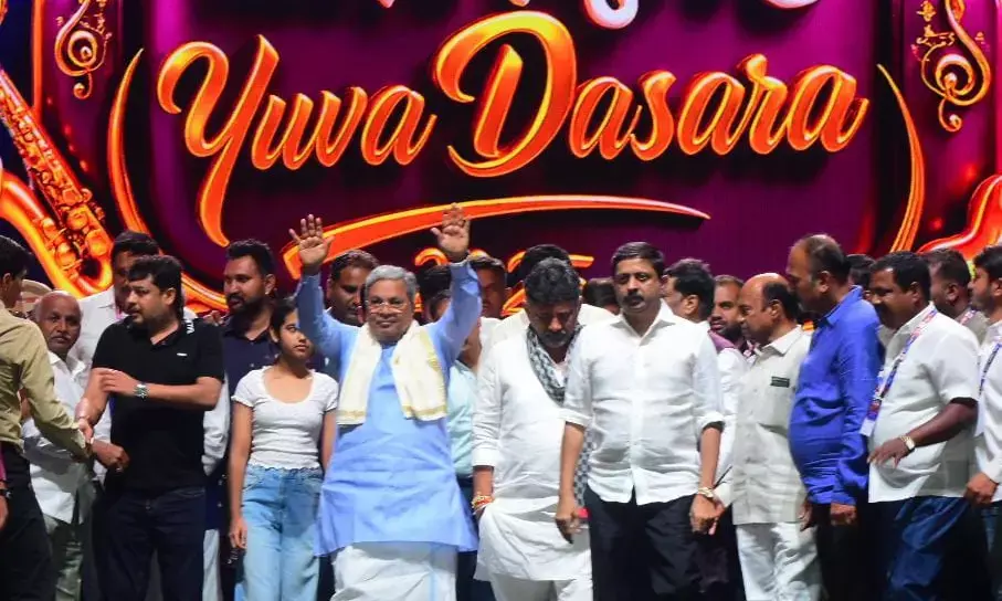 ನಗರದ ಹೊರವಲಯದ ನಂಜನಗೂಡು ರಿಂಗ್ ರಸ್ತೆಯ ಉತ್ತನಹಳ್ಳಿ ಬಳಿ ನಡೆಯುತ್ತಿರುವ ಯುವ ದಸರಾ ಕಾರ್ಯಕ್ರಮಕ್ಕೆ ಸಚಿವ ಸಂಪುಟದ ಹಲವು ಸಹದ್ಯೋಗಿಗಳೊಂದಿಗೆ ಬುಧವಾರ ಮುಖ್ಯಮಂತ್ರಿ ಸಿದ್ದರಾಮಯ್ಯ ಆಗಮಿಸಿ ಯುವ ಸಮೂಹವನ್ನು ಕಂಡು ಸಂತಸ ಪಟ್ಟರು.