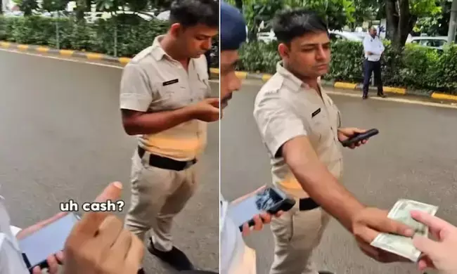 ಇತ್ತೀಚೆಗೆ ಸ್ಕೂಟರ್ ಒಂದರ ಮೇಲೆ ಹೆಲ್ಮೆಟ್ ಧರಿಸದೆ ಹಿಂಬದಿ ಸವಾರರಾಗಿ ಪ್ರಯಾಣಿಸುತ್ತಿದ್ದ ಜಪಾನ್ ಪ್ರವಾಸಿಗರೊಬ್ಬರ ಬಳಿ ಗುರುಗ್ರಾಮ ಸಂಚಾರಿ ಪೊಲೀಸ್ ಅಧಿಕಾರಿಗಳು 1,000 ರೂ.ಗೆ ಬೇಡಿಕೆ ಇಟ್ಟು, ಅದನ್ನು ಸ್ವೀಕರಿಸುತ್ತಿರುವ ವೀಡಿಯೋ ವೈರಲ್ ಆಗಿತ್ತು. ಕಾರ್ಡ್ ಮೂಲಕ ದಂಡ ಪಾವತಿಸಿಕೊಳ್ಳಲು ನಿರಾಕರಿಸಿದ್ದ ಪೊಲೀಸ್ ಅಧಿಕಾರಿಯೊಬ್ಬರು, ನಗದು ರೂಪದಲ್ಲಿ ದಂಡ ಪಾವತಿಸುವಂತೆ ಒತ್ತಾಯಿಸಿದ್ದರು. ಆ ದಂಡಕ್ಕೆ ಯಾವುದೇ ರಸೀದಿ ನೀಡಿರಲಿಲ್ಲ.