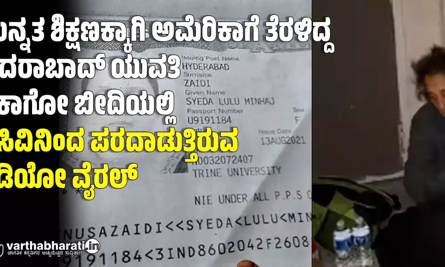 ಉನ್ನತ ಶಿಕ್ಷಣಕ್ಕಾಗಿ ಅಮೆರಿಕಾಗೆ ತೆರಳಿದ್ದ ಹೈದರಾಬಾದ್ ಯುವತಿ ಚಿಕಾಗೋ ಬೀದಿಯಲ್ಲಿ ಹಸಿವಿನಿಂದ ಪರದಾಡುತ್ತಿರುವ ವಿಡಿಯೋ ವೈರಲ್