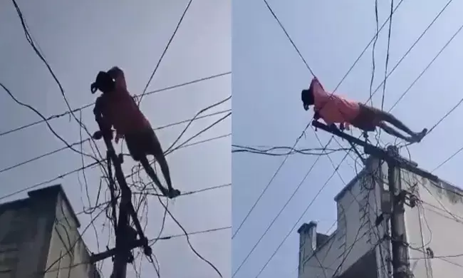 ಆಂಧ್ರಪ್ರದೇಶ | ಮದ್ಯ ಸೇವನೆಗೆ ಹಣ ನೀಡಲಿಲ್ಲವೆಂದು ವಿದ್ಯುತ್ ಕಂಬವೇರಿ ತಂತಿಗಳ ಮೇಲೆ ಮಲಗಿಕೊಂಡ ಕುಡುಕ!