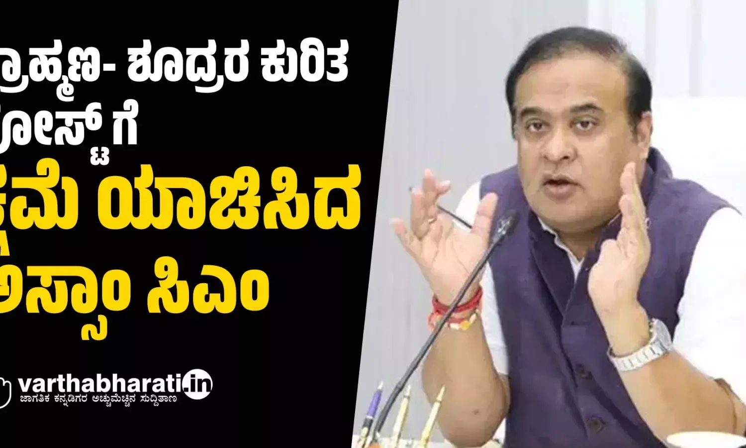 ಬ್ರಾಹ್ಮಣ- ಶೂದ್ರರ ಕುರಿತ ಪೋಸ್ಟ್ ಗೆ ಕ್ಷಮೆ ಯಾಚಿಸಿದ ಅಸ್ಸಾಂ ಸಿಎಂ