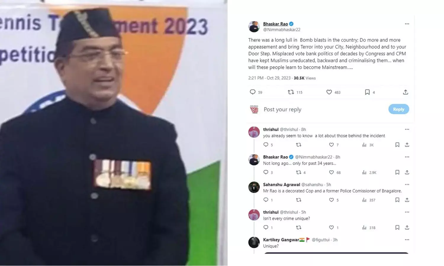 ಈ ಪೋಸ್ಟ್ ನಲ್ಲಿ ಬೆಂಗಳೂರಿನ ನಿವೃತ್ತ ಪೊಲೀಸ್ ಕಮಿಶನರ್ ಆಗಿದ್ದ ಭಾಸ್ಕರ್ ರಾವ್, ಕಲಮಶ್ಶೇರಿ ಸ್ಪೋಟಕ್ಕೆ ಮುಸ್ಲಿಮರೇ ಕಾರಣ ಎಂದು ಪರೋಕ್ಷವಾಗಿ ಬಿಂಬಿಸಲು ಹೊರಟಿದ್ದು ಈಗ ಭಾರೀ ಚರ್ಚೆಗೆ ಕಾರಣವಾಗಿದೆ.