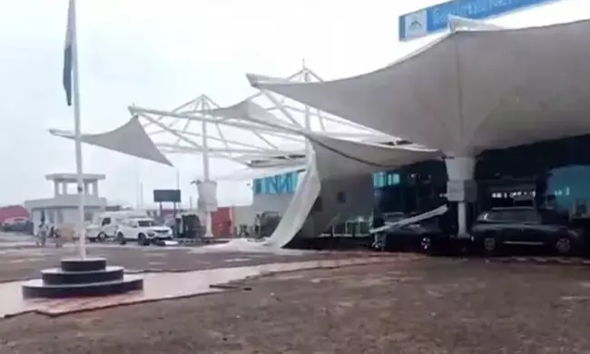 ಗುಜರಾತ್ನಲ್ಲಿ ಭಾರಿ ಮಳೆ | ರಾಜ್ಕೋಟ್ ವಿಮಾನ ನಿಲ್ದಾಣದ ಟರ್ಮಿನಲ್ನ ಹೊರಭಾಗದ ಮೇಲ್ಚಾವಣಿ ಕುಸಿತ