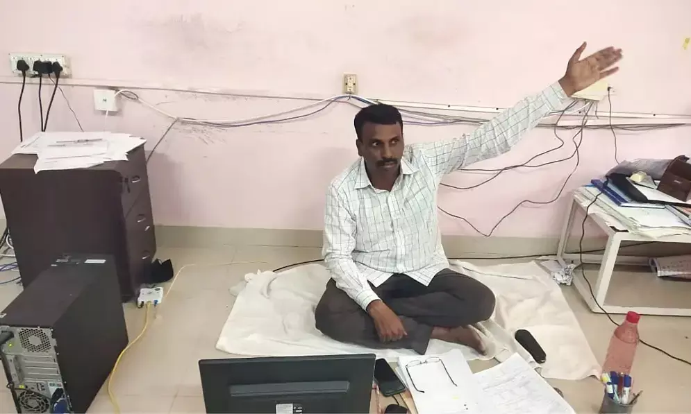 ತಿರುಪತಿ: ಇಲ್ಲಿನ ಶ್ರೀ ವೆಂಕಟೇಶ್ವರ ಪಶುವೈದ್ಯಕೀಯ ವಿಶ್ವವಿದ್ಯಾಲಯದ ಡೈರಿ ತಂತ್ರಜ್ಞಾನ ವಿಭಾಗದಲ್ಲಿ ದಲಿತ ಪ್ರಾಧ್ಯಾಪಕ ವಿ ರವಿವರ್ಮ ಅವರು ಕಾಲುಗಳನ್ನು ಮಡಚಿ ನೆಲದ ಮೇಲೆ ಕುಳಿತಿರುವ ಫೋಟೋ ಜೂನ್ 20 ರಂದು ಸಾಮಾಜಿಕ ಮಾಧ್ಯಮದಲ್ಲಿ ವೈರಲ್ ಆಗಿತ್ತು.