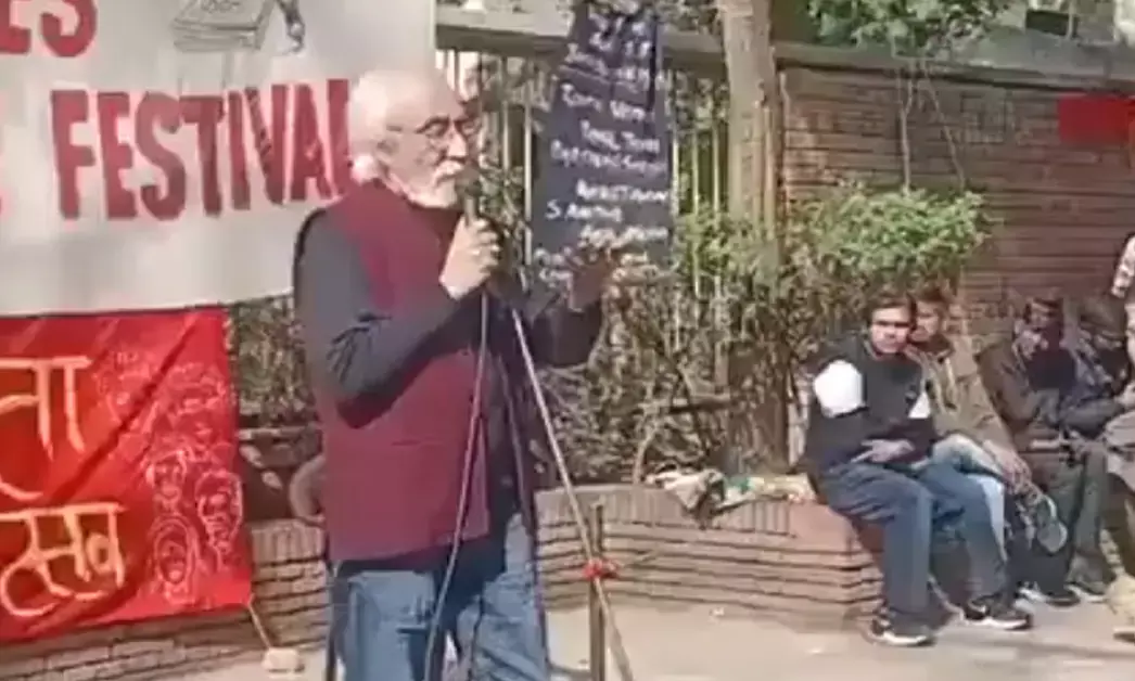 ದಿಲ್ಲಿ ವಿವಿಯಲ್ಲಿ ಭಾಷಣ ಮಾಡುತ್ತಿದ್ದ ಇತಿಹಾಸಕಾರ ಇರ್ಫಾನ್ ಹಬೀಬ್ರತ್ತ ನೀರಿನ ಬಕೆಟ್ ಎಸೆತ