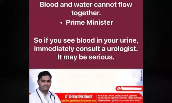 ಸಾಮಾಜಿಕ ಜಾಲ ತಾಣದಲ್ಲಿ ತಮ್ಮ ವೈದ್ಯಕೀಯ ಕ್ಲಿನಿಕ್ ನ ಪ್ರಚಾರದ ಭಾಗವಾಗಿ ಅವರು ಮಾಡಿರುವ ಪೋಸ್ಟ್ ವೈರಲ್ ಆಗಿದೆ. ಈ ಪೋಸ್ಟ್ ನಲ್ಲಿ ಅವರು ಪ್ರಧಾನಿಯವರ ಹೇಳಿಕೆಯನ್ನು ಅವರು ಜಾಣತನದಿಂದ ಪೋಣಿಸಿದ್ದಾರೆ. "ರಕ್ತ ಮತ್ತು ನೀರು ಒಟ್ಟಿಗೆ ಹರಿಯಲು ಸಾಧ್ಯವಿಲ್ಲ. ಆದ್ದರಿಂದ ನೀವು ನಿಮ್ಮ ಮೂತ್ರದಲ್ಲಿ ರಕ್ತವನ್ನು ನೋಡಿದರೆ, ತಕ್ಷಣ ಮೂತ್ರಶಾಸ್ತ್ರಜ್ಞರನ್ನು ಸಂಪರ್ಕಿಸಿ. ಅದು ಗಂಭೀರವಾಗಿರಬಹುದು," ಎಂದು ಹೇಳಿರುವುದು ವಿವಾದಕ್ಕೆ ನಾಂದಿ ಹಾಡಿದೆ.