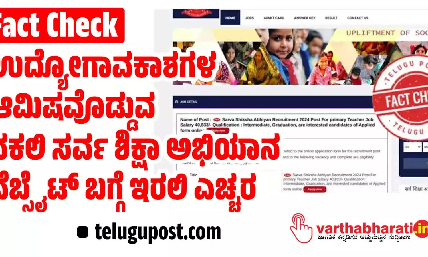 Fact Check: ಉದ್ಯೋಗಾವಕಾಶಗಳ ಆಮಿಷವೊಡ್ಡುವ ನಕಲಿ ಸರ್ವ ಶಿಕ್ಷಾ ಅಭಿಯಾನ ವೆಬ್ಸೈಟ್ ಬಗ್ಗೆ ಇರಲಿ ಎಚ್ಚರ