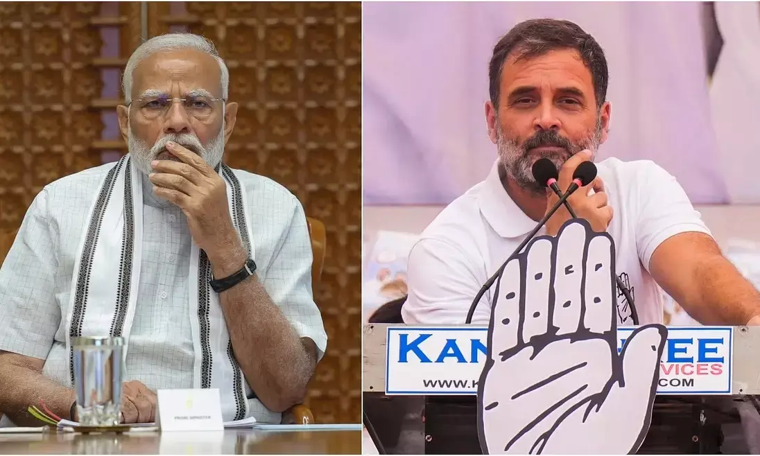 ಪ್ರಧಾನಿ ನರೇಂದ್ರ ಮೋದಿ, ಲೋಕಸಭೆಯಲ್ಲಿ ವಿಪಕ್ಷ ನಾಯಕ ರಾಹುಲ್ ಗಾಂಧಿ | Photo : PTI