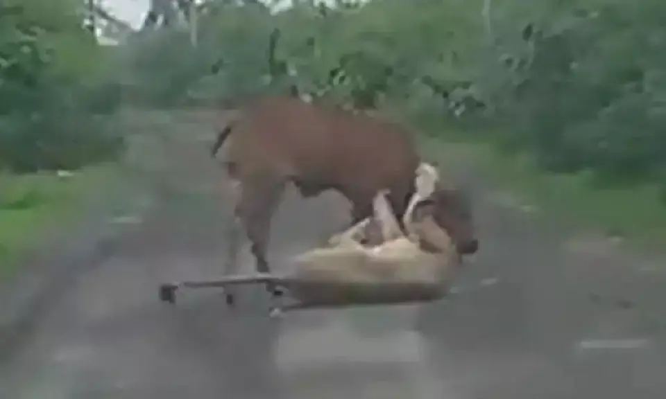 ಗುಜರಾತ್: ಸಿಂಹದ ಬಾಯಿಯಿಂದ ತನ್ನ ಹಸುವನ್ನು ರಕ್ಷಿಸಿದ ಮಾಲಕ; ವಿಡಿಯೊ ವೈರಲ್