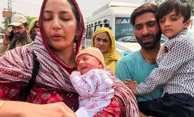 ವಾಘಾ ಅಟ್ಟಾರಿ ಗಡಿಯಲ್ಲಿ ಪಾಕಿಸ್ತಾನಕ್ಕೆ ಮರಳಲು ತನ್ನ 14 ದಿನಗಳ ಪುಟ್ಟ ಮಗುವಿನೊಂದಿಗೆ ಸಿದ್ಧವಾಗಿರುವ ಬಾಣಂತಿ, ಪಾಕಿಸ್ತಾನಿ ಪ್ರಜೆ ಸಾರಾ ಖಾನ್ | PTI PHOTO