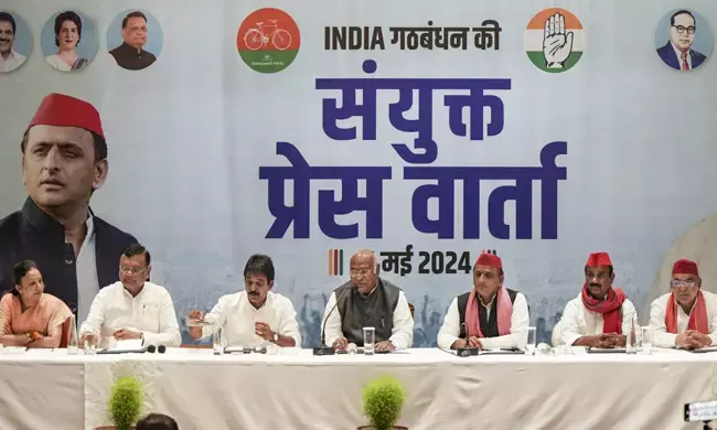 ಇಂದು ಲಕ್ನೊದಲ್ಲಿ ಸಮಾಜವಾದಿ ಪಕ್ಷದ ಮುಖ್ಯಸ್ಥ ಅಖಿಲೇಶ್ ಯಾದವ್ ರೊಂದಿಗೆ ನಡೆದ ಇಂಡಿಯಾ ಮೈತ್ರಿಕೂಟದ ಜಂಟಿ ಪತ್ರಿಕಾಗೋಷ್ಠಿಯನ್ನುದ್ದೇಶಿಸಿ ಮಾತನಾಡಿದ ಖರ್ಗೆ, “ಸದ್ಯ ಪೂರ್ಣಗೊಂಡಿರುವ ನಾಲ್ಕು ಹಂತಗಳ ಮತದಾನದಲ್ಲಿ ಇಂಡಿಯಾ ಮೈತ್ರಿಕೂಟವು ಬಲಿಷ್ಠ ಸ್ಥಿತಿಯಲ್ಲಿದ್ದು, ದೇಶದ ಜನರು ಪ್ರಧಾನಿ ಮೋದಿಗೆ ಬೀಳ್ಕೊಡುಗೆ ನೀಡಲು ನಿರ್ಧರಿಸಿದ್ದಾರೆ. ಜೂನ್ 4ರಂದು ಇಂಡಿಯಾ ಮೈತ್ರಿಕೂಟ ಸರಕಾರ ರಚಿಸಲಿದೆ. ಪ್ರಜಾಪ್ರಭುತ್ವ ಹಾಗೂ ಸಂವಿಧಾನವನ್ನು ರಕ್ಷಿಸಲು ಈ ಚುನಾವಣೆ ಮುಖ್ಯವಾಗಿದೆ” ಎಂದು ಹೇಳಿದರು.