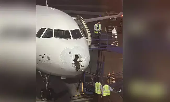 ಹೊಸದಿಲ್ಲಿ: ದಿಲ್ಲಿಯಿಂದ ಶ್ರೀನಗರಕ್ಕೆ ತೆರಳುವ 227 ಪ್ರಯಾಣಿಕರನ್ನು ಹೊತ್ತ ಇಂಡಿಗೊ ಏರ್ಲೈನ್ಸ್ನ ವಿಮಾನವೊಂದು ವಾಯುಮಾರ್ಗದಲ್ಲಿ ಅನಿರೀಕ್ಷಿತವಾಗಿ ಅಲಿಕಲ್ಲು ಮಳೆಯ ನಡುವೆ ಸಿಲುಕಿ, ಪವಾಡಸದೃಶವಾಗಿ ಪಾರಾಗಿದೆ. ಅಲಿಕಲ್ಲು ಮಳೆಯ ಹೊಡೆತಕ್ಕೆ ಸಿಲುಕಿದ ವಿಮಾನದ ಮೂತಿಯ ತುದಿಭಾಗಕ್ಕೆ ಭಾರೀ ಹಾನಿಯಾಗಿದ್ದು, ಬಿರುಕು ಮೂಡಿದೆ.