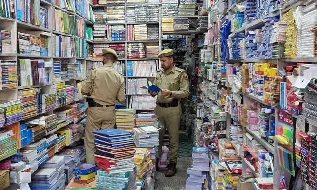 ಪುಸ್ತಕದಂಗಡಿಗಳನ್ನು ಪರಿಶೀಲಿಸುತ್ತಿರುವ ಪೊಲೀಸರು PC: x.com/ImranNaik