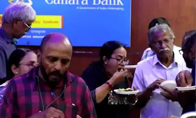 ಕೊಚ್ಚಿ : ಕೇರಳದ ಕೊಚ್ಚಿಯ ಕೆನರಾ ಬ್ಯಾಂಕ್ ಶಾಖೆಯ ಕ್ಯಾಂಟೀನ್ನಲ್ಲಿ ಬೀಫ್ (ಗೋಮಾಂಸ) ನಿಷೇಧಿಸುವಂತೆ ಮ್ಯಾನೇಜರ್ ಆದೇಶಿಸಿದ ಹಿನ್ನೆಲೆ ಆಕ್ರೋಶಗೊಂಡ ಬ್ಯಾಂಕ್ ನೌಕರರು ಬೀಫ್ ಸೇವಿಸುವ ಮೂಲಕ ಪ್ರತಿಭಟನೆ ನಡೆಸಿದ್ದಾರೆ.