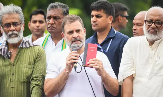 ಪಾಟ್ನಾದಲ್ಲಿರುವ ಚುನಾವಣಾ ಆಯೋಗ ಕಚೇರಿಗೆ ಸಾಗಿದ ಪ್ರತಿಭಟನಾ ಮೆರವಣಿಗೆಯಲ್ಲಿ ಭಾಗವಹಿಸಿ ರಾಹುಲ್ ಗಾಂಧಿ ಮಾತನಾಡಿದ ಅವರು, "ಮಹಾರಾಷ್ಟ್ರದ ಚುನಾವಣೆ ಬಿಜೆಪಿಗೆ ಅನುಕೂಲವಾಗುವಂತೆ ಅಕ್ರಮವಾಗಿ ನಡೆಸಲ್ಪಟ್ಟಿತು. ಬಿಹಾರದಲ್ಲಿಯೂ ಅಂತಹದ್ದೇ ಅಕ್ರಮ ಪುನರಾವರ್ತಿಸಲು ಯತ್ನ ನಡೆಯುತ್ತಿದೆ. ಆದರೆ ನಾವು ಇದಕ್ಕೆ ಅವಕಾಶ ನೀಡುವುದಿಲ್ಲ," ಎಂದರು.