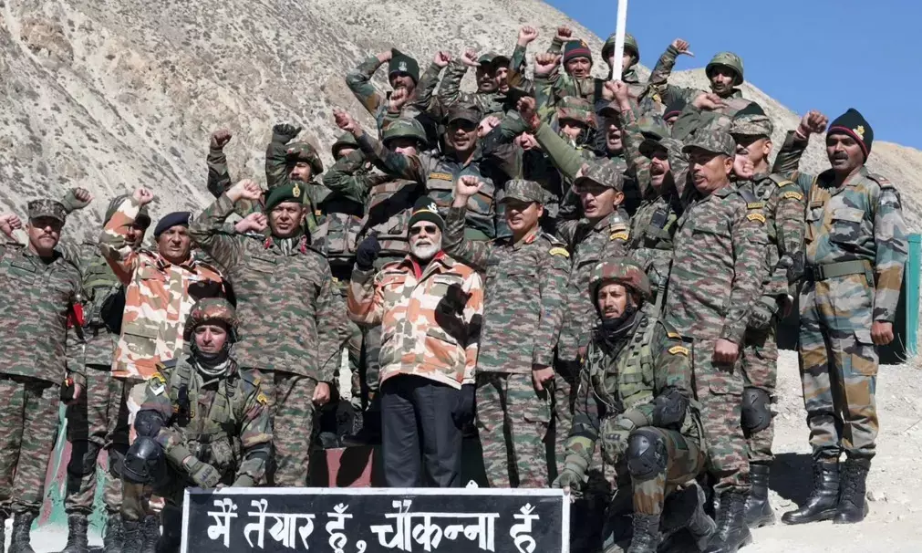ವಿಶ್ವಾದ್ಯಂತ ತೀವ್ರ ಬಿಕ್ಕಟ್ಟುಗಳಿರುವ ಸಂದರ್ಭದಲ್ಲಿ ದೇಶದ ಗಡಿಗಳನ್ನು ರಕ್ಷಿಸುತ್ತಿರುವ ಸೇನಾಪಡೆಗಳ ಪಾತ್ರವನ್ನು ಪ್ರಧಾನಿ ಮೋದಿ ಶ್ಲಾಘಿಸಿದರು. “ ಇಂದಿನ ಜಾಗತಿಕ ಪರಿಸ್ಥಿತಿಯಲ್ಲಿ ಭಾರತದ ಮೇಲಿನ ನಿರೀಕ್ಷೆಯು ನಿರಂತರವಾಗಿ ಮುಂದುವರಿಯುತ್ತಿದೆ. ಇಂತಹ ಪರಿಸ್ಥಿತಿಯಲ್ಲಿ ಭಾರತದ ಗಡಿಗಳು ಸುರಕ್ಷಿತವಾಗಿ ಉಳಿಯುವುದು ಅಗತ್ಯವಾಗಿದೆ. ದೇಶದಲ್ಲಿ ನಾವು ಶಾಂತಿಯ ವಾತಾವರಣವನ್ನು ಸೃಷ್ಟಿಸುತ್ತಿದ್ದು, ಇದರಲ್ಲಿ ನಿಮ್ಮ ಪಾತ್ರ ಹಿರಿದಾಗಿದೆ” ಎಂದು ಸೇನಾಪಡೆಗಳನ್ನುದ್ದೇಶಿಸಿ ಅವರು ಹೇಳಿದರು.