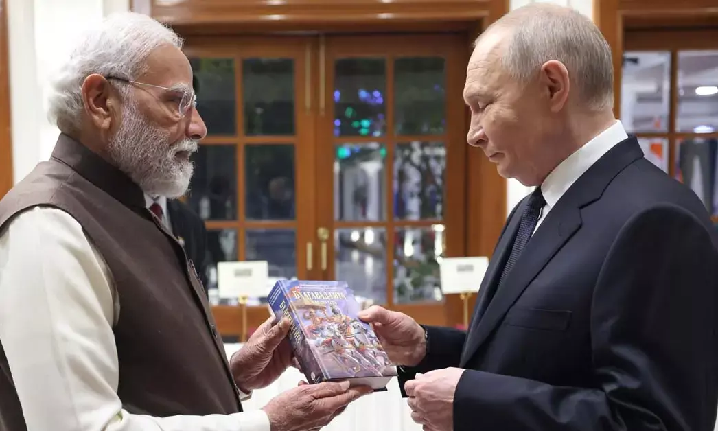 ರಶ್ಯ ಅಧ್ಯಕ್ಷ ಪುಟಿನ್ಗೆ ಭಗವದ್ಗೀತೆ ಉಡುಗೊರೆ ನೀಡಿದ ಪ್ರಧಾನಿ ಮೋದಿ