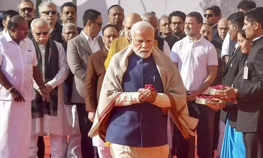 ಹಳೆಯ ಸಂಸತ್ ಭವನದೆದುರು ಆಯೋಜಿಸಲಾಗಿದ್ದ ಕಾರ್ಯಕ್ರಮದಲ್ಲಿ ಕಾಂಗ್ರೆಸ್ ಅಧ್ಯಕ್ಷ ಮಲ್ಲಿಕಾರ್ಜುನ ಖರ್ಗೆ, ಕೇಂದ್ರ ಸಚಿವ ಅಮಿತ್ ಶಾ, ಸಂಸದೀಯ ವ್ಯವಹಾರಗಳ ಸಚಿವ ಕಿರಣ್ ರಿಜಿಜು ಕೂಡಾ ಗೌರವ ನಮನ ಸಲ್ಲಿಸಿದರು.