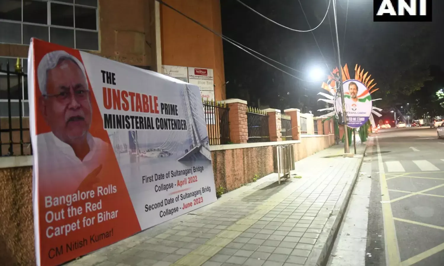 ಬೆಂಗಳೂರು: ಬೆಂಗಳೂರಿನಲ್ಲಿ ವಿರೋಧ ಪಕ್ಷದ ನಾಯಕರ ಸಭೆಯ ಎರಡನೇ ದಿನದ ಮೊದಲು, ನಗರದಲ್ಲಿ ಬಿಹಾರ ಮುಖ್ಯಮಂತ್ರಿ ನಿತೀಶ್ ಕುಮಾರ್ ಅವರನ್ನು ಗುರಿಯಾಗಿಸುವ ಪೋಸ್ಟರ್ ಗಳು ಹಾಗೂ ಬ್ಯಾನರ್ ಗಳು ಕಾಣಿಸಿಕೊಂಡವು. ಪೋಸ್ಟರ್ ಗಳಲ್ಲಿ "ಅಸ್ಥಿರ ಪ್ರಧಾನ ಮಂತ್ರಿ ಸ್ಪರ್ಧಿ" ಎಂದು ಬರೆಯಲಾಗಿದೆ.