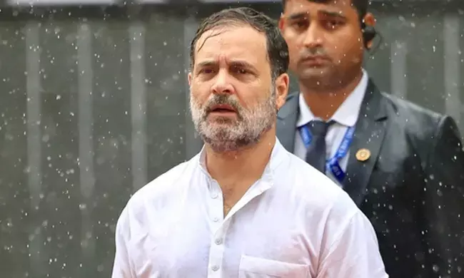 ಸ್ವಾತಂತ್ರ್ಯ ದಿನಾಚರಣೆ | ಇಂದಿರಾ ಭವನದಲ್ಲಿ ಧ್ವಜಾರೋಹಣದ ವೇಳೆ ಮಳೆಯಲ್ಲಿ ನೆನೆಯುತ್ತಿದ್ದ ರಾಹುಲ್ ಗಾಂಧಿ; ಫೋಟೊ ವೈರಲ್