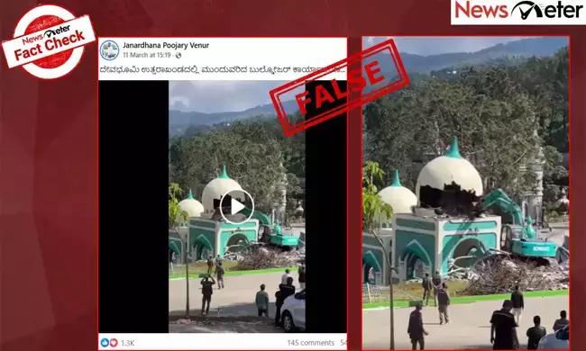 ಈ ಹೇಳಿಕೆ ಸುಳ್ಳು ಎಂದು ನ್ಯೂಸ್ ಮೀಟರ್ ಕಂಡುಕೊಂಡಿದೆ. ಈ ವೀಡಿಯೊ ಇಂಡೋನೇಷ್ಯಾದ್ದಾಗಿದ್ದು, ಮಸೀದಿಯನ್ನು ಕೆಡವುತ್ತಿರುವುದನ್ನು ಇದರಲ್ಲಿ ತೋರಿಸಲಾಗಿಲ್ಲ.