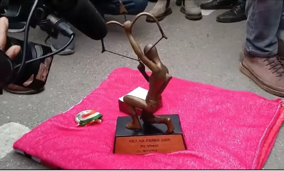 ಕರ್ತವ್ಯ ಪಥದ ಪಾದಚಾರಿ ಮಾರ್ಗದಲ್ಲಿ ಅರ್ಜುನ, ಖೇಲ್ ರತ್ನ ಪ್ರಶಸ್ತಿಗಳನ್ನು ತೊರೆದ ವಿನೇಶ್ ಫೋಗಟ್
