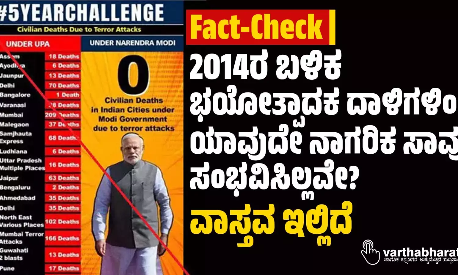 Fact-Check| 2014ರ ಬಳಿಕ ಭಯೋತ್ಪಾದಕ ದಾಳಿಗಳಿಂದ ಯಾವುದೇ ನಾಗರಿಕ ಸಾವು ಸಂಭವಿಸಿಲ್ಲವೇ?: ವಾಸ್ತವ ಇಲ್ಲಿದೆ