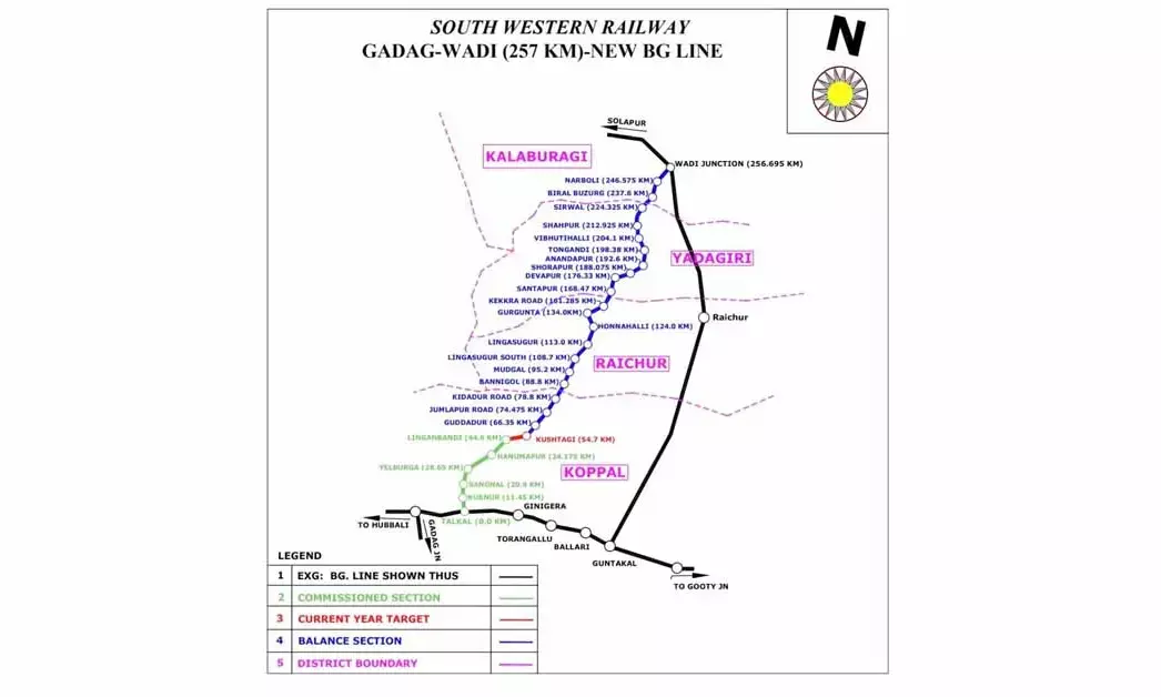 ಗದಗ-ವಾಡಿ ರೈಲ್ವೆ ಮಾರ್ಗದ ಕಾಮಗಾರಿ ಆರಂಭಗೊಂಡಿದ್ದು, ಕುಷ್ಟಗಿ ಯಲಬುರ್ಗಾ ಭಾಗದಲ್ಲಿ 60 ಕಿ.ಮೀ. ಮಾರ್ಗವು ಸೇವೆಗೆ ಸಿದ್ಧವಾದರೆ, ವಾಡಿ ಶಹಾಪುರ 45 ಕಿ.ಮೀ. ಮಾರ್ಗ ಸೇವೆಗೆ ಸಿದ್ಧವಾಗಿದೆ. ಆದರೆ, ಮಧ್ಯ ಭಾಗದಲ್ಲಿರುವ ಲಿಂಗಸುಗೂರು ಕಾಮಗಾರಿ ಆರಂಭವಾಗದೆ ತೆವಳುತ್ತ ಸಾಗಿದೆ. ರಾಜ್ಯದವರೇ ರೈಲ್ವೆ ಸಚಿವರಾಗಿದ್ದರೂ ಕಾಮಗಾರಿ ವೇಗ ಪಡೆದುಕೊಳ್ಳುತ್ತಿಲ್ಲ ಎಂದು ಸ್ಥಳೀಯ ರೈಲ್ವೆ ಪ್ರಯಾಣಿಕರು ಕೇಂದ್ರ ಸರ್ಕಾರದ ವಿರುದ್ಧ ಅಸಮಾಧಾನ ವ್ಯಕ್ತಪಡಿಸುತ್ತಿದ್ದಾರೆ.