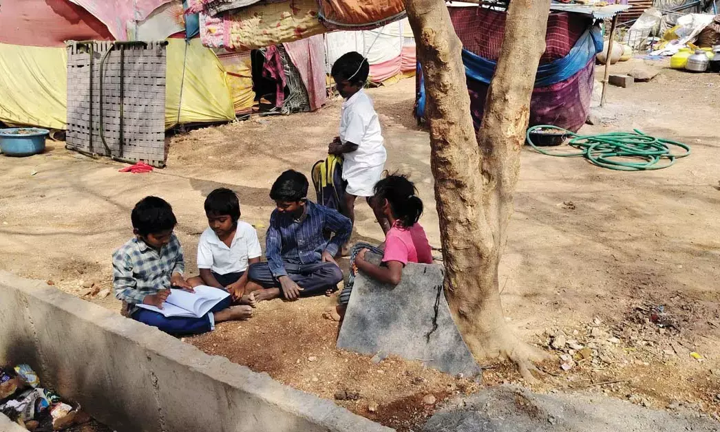 ಮೂಲಸೌಕರ್ಯಗಳಿಂದ ವಂಚಿತಗೊಂಡ ಸುಡುಗಾಡು ಸಿದ್ಧ ಸಮುದಾಯ: ಗುಡಿಸಲುಗಳ ಮುಂದೆಯೇ ಮಕ್ಕಳ ವಿದ್ಯಾಭ್ಯಾಸ