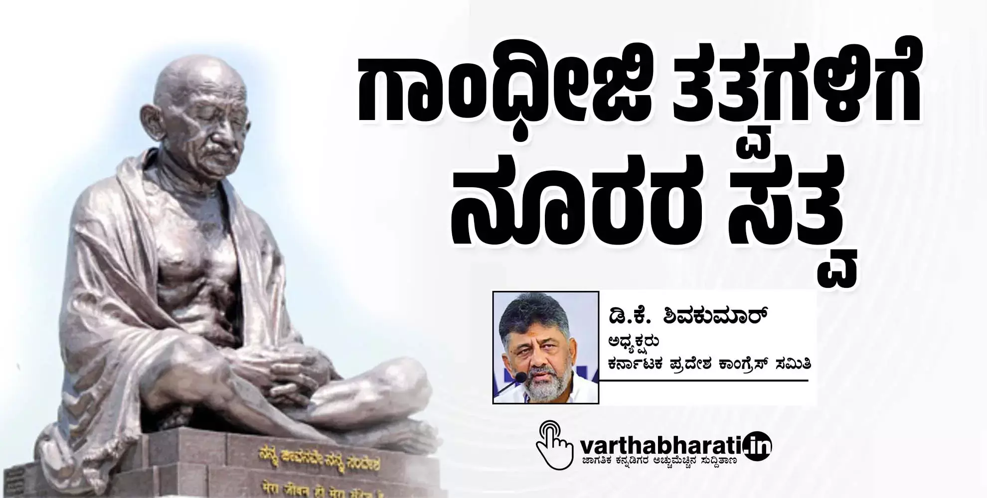 ಬಾಪು ಅವರೇ ಹೇಳುವಂತೆ ‘‘ತನ್ನ ಕರ್ತವ್ಯವನ್ನು ಸರಿಯಾಗಿ ಮಾಡುತ್ತಿರುವವನಿಗೆ ಜಗತ್ತು ಎಂದಿಗೂ ಬೇಸರ ಎನಿಸುವುದಿಲ್ಲ’’. ಗಾಂಧೀಜಿ ಅವರ ಈ ಮಾತೇ ನನ್ನ ಅನೇಕ ಕೆಲಸಗಳಿಗೆ ಪ್ರೇರಣೆ. ನಾನು ಕೆಪಿಸಿಸಿ ಅಧ್ಯಕ್ಷನಾಗಿ ಅಧಿಕಾರವಹಿಸಿಕೊಂಡ ಮೇಲೆಯೂ ಇದೇ ಹಾದಿಯಲ್ಲಿ ನಡೆದಿದ್ದೇನೆ, ಕಾರ್ಯಕ್ರಮಗಳನ್ನು ರೂಪಿಸಿದ್ದೇನೆ. ಮೇಕೆದಾಟು ಪಾದಯಾತ್ರೆ, ಸ್ವಾತಂತ್ರ್ಯ ನಡಿಗೆ ಸೇರಿದಂತೆ ಅನೇಕ ಪಾದಯಾತ್ರೆಗಳ ಹಿಂದಿರುವ ಶಕ್ತಿಯೇ ಬಾಪು. ಅಲ್ಲದೇ ನಮ್ಮ ಸರಕಾರ ನೀಡುತ್ತಿರುವ ಐದು ಗ್ಯಾರಂಟಿ ಯೋಜನೆಗಳಿಗೆ ಗಾಂಧಿವಾದವೇ ಪ್ರೇರಣೆ. 2010ರಲ್ಲಿ ಕೈಗೊಂಡ ಬಳ್ಳಾರಿ ಪಾದಯಾತ್ರೆ, ಶ್ರೀಮತಿ ಸೋನಿಯಾ ಗಾಂಧಿಯವರ ಮಾರ್ಗದರ್ಶನದಲ್ಲಿ ರಾಷ್ಟ್ರೀಯ ನಾಯಕ ರಾಹುಲ್ ಗಾಂಧಿ ಅವರ ನೇತೃತ್ವದಲ್ಲಿ 2022ರಲ್ಲಿ ನಡೆಸಿದ ‘ಭಾರತ ಜೋಡೊ ಯಾತ್ರೆ’ಗೆ ಮಹಾತ್ಮನ ಹೋರಾಟದ ಹಾದಿಯೇ ಬಲ.
