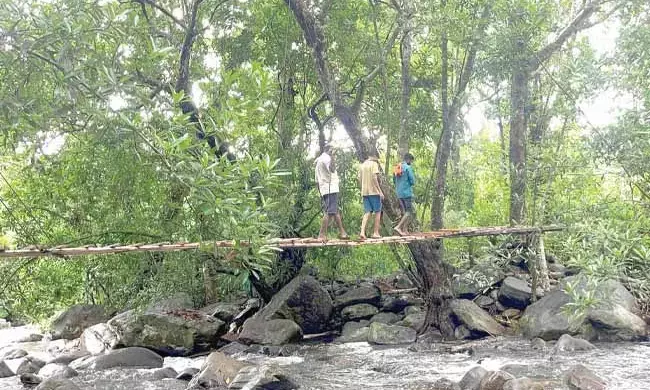 ಅತ್ಯಾಡಿ ಗ್ರಾಮಸ್ಥರಿಗೆ ಮರೀಚಿಕೆಯಾದ ಶಾಶ್ವತ ಸೇತುವೆ | ಅಡಿಕೆ ಪಾಲದ ಅಪಾಯಕಾರಿ ನಡಿಗೆಯೇ ಆಸರೆ