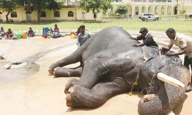 ದಸರಾ ಜಂಬೂ ಸವಾರಿಯಲ್ಲಿ ಭಾಗವಹಿಸಲು ಕಾಡಿನಿಂದ ನಾಡಿಗೆ ಬಂದಿರುವ ದಸರಾ ಗಜಪಡೆಗಳ ಮೊದಲ ತಂಡ ಅರಮನೆ ಆವರಣದಲ್ಲಿ ವಿರಮಿಸುತ್ತ ತಾಲೀಮಿನಲ್ಲಿ ಭಾಗಿಯಾಗುತ್ತಿವೆ. ಅರಮನೆಯ ಸುಂದರ ಆವರಣದ ಮೈದಾನದಲ್ಲಿ ಅಭಿಮನ್ಯು ನೇತೃತ್ವದ ಧನಂಜಯ, ಭೀಮ, ಕಂಜನ್, ಏಕಲವ್ಯ, ಪ್ರಶಾಂತ, ಮಹೇಂದ್ರ, ಕಾವೇರಿ, ಬಳ್ಳೆಲಕ್ಷ್ಮೀ ಗಜಪಡೆಗಳು ನೀರಿನಲ್ಲಿ ಮಜ್ಜನ ಮಾಡಿಕೊಂಡು ಜಂಬೂ ಸವಾರಿಗೆ ತಯಾರಾಗುತ್ತಿವೆ.