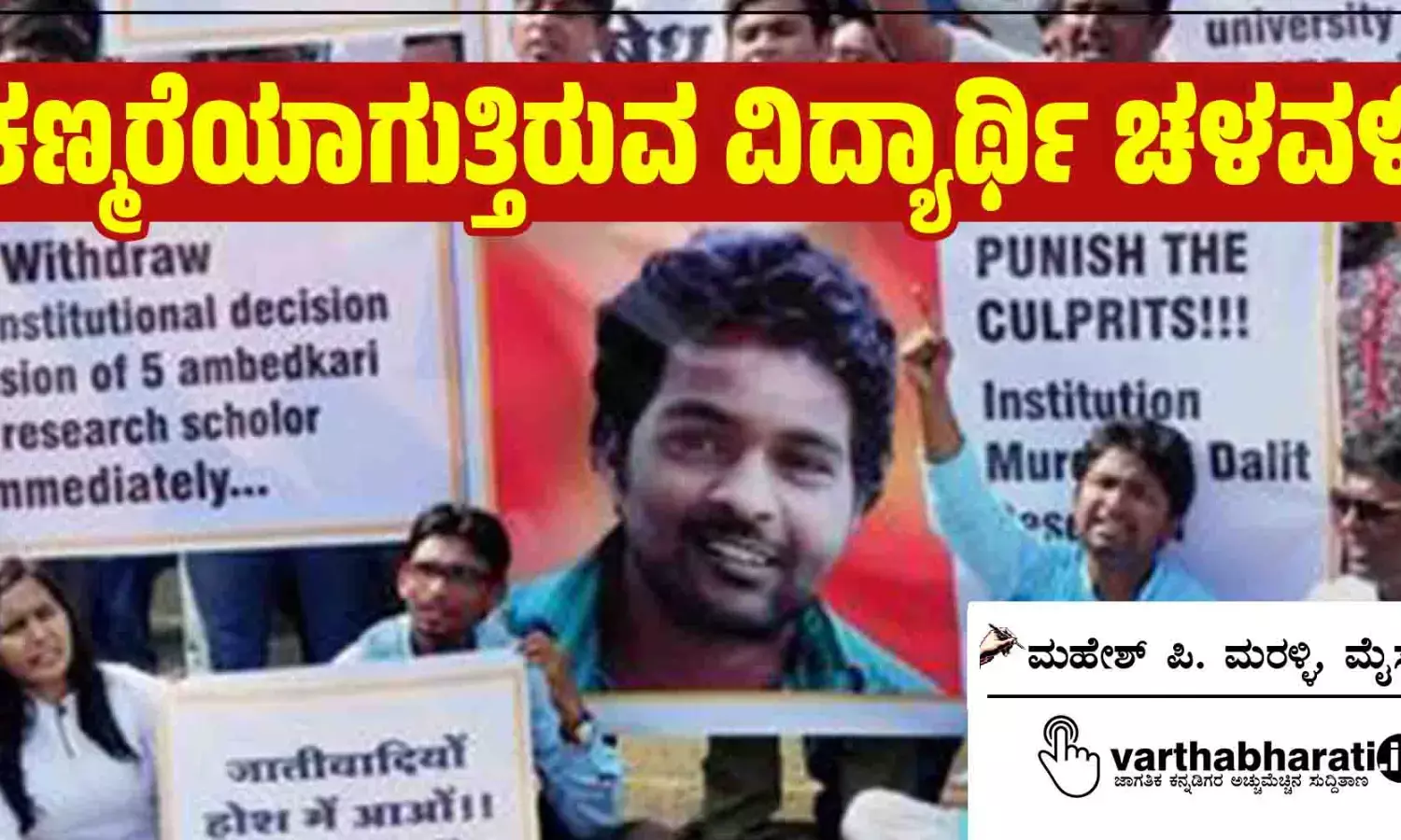ದಲಿತ ಸಂಶೋಧಕನ ಆತ್ಮಹತ್ಯೆಯ ಕುರಿತು ಪ್ರತಿಭಟನೆಗಳು-2016, ಹೈದರಾಬಾದ್ ವಿಶ್ವವಿದ್ಯಾನಿಲಯದ ದಲಿತ ಸಂಶೋಧಕನ ಆತ್ಮಹತ್ಯೆ ಮತ್ತು ಅದರ ಪರಿಣಾಮವು ಜನವರಿ ಪೂರ್ತಿ ಮಾಧ್ಯಮಗಳಲ್ಲಿ ಪ್ರಾಬಲ್ಯ ಸಾಧಿಸಿತು. ಮೃತ ವಿದ್ಯಾರ್ಥಿ ರೋಹಿತ್ ವೇಮುಲಾಗೆ ನ್ಯಾಯ ದೊರಕಿಸಿಕೊಡಲು ವಿದ್ಯಾರ್ಥಿಗಳು ಮುಂಚೂಣಿಯಲ್ಲಿದ್ದು, ದೇಶಾದ್ಯಂತ ಬೃಹತ್ ಆಂದೋಲನಕ್ಕೆ ಸಾಕ್ಷಿಯಾಯಿತು. ಭಾರತದಾದ್ಯಂತದ ವಿಶ್ವವಿದ್ಯಾನಿಲಯಗಳ ನೂರಾರು ವಿದ್ಯಾರ್ಥಿಗಳು ‘ಜಸ್ಟಿಸ್ ಫಾರ್ ರೋಹಿತ್ ವೇಮುಲಾ’ ಪ್ರತಿಭಟನಾ ರ್ಯಾಲಿಯಲ್ಲಿ ಭಾಗವಹಿಸಿದರು.
