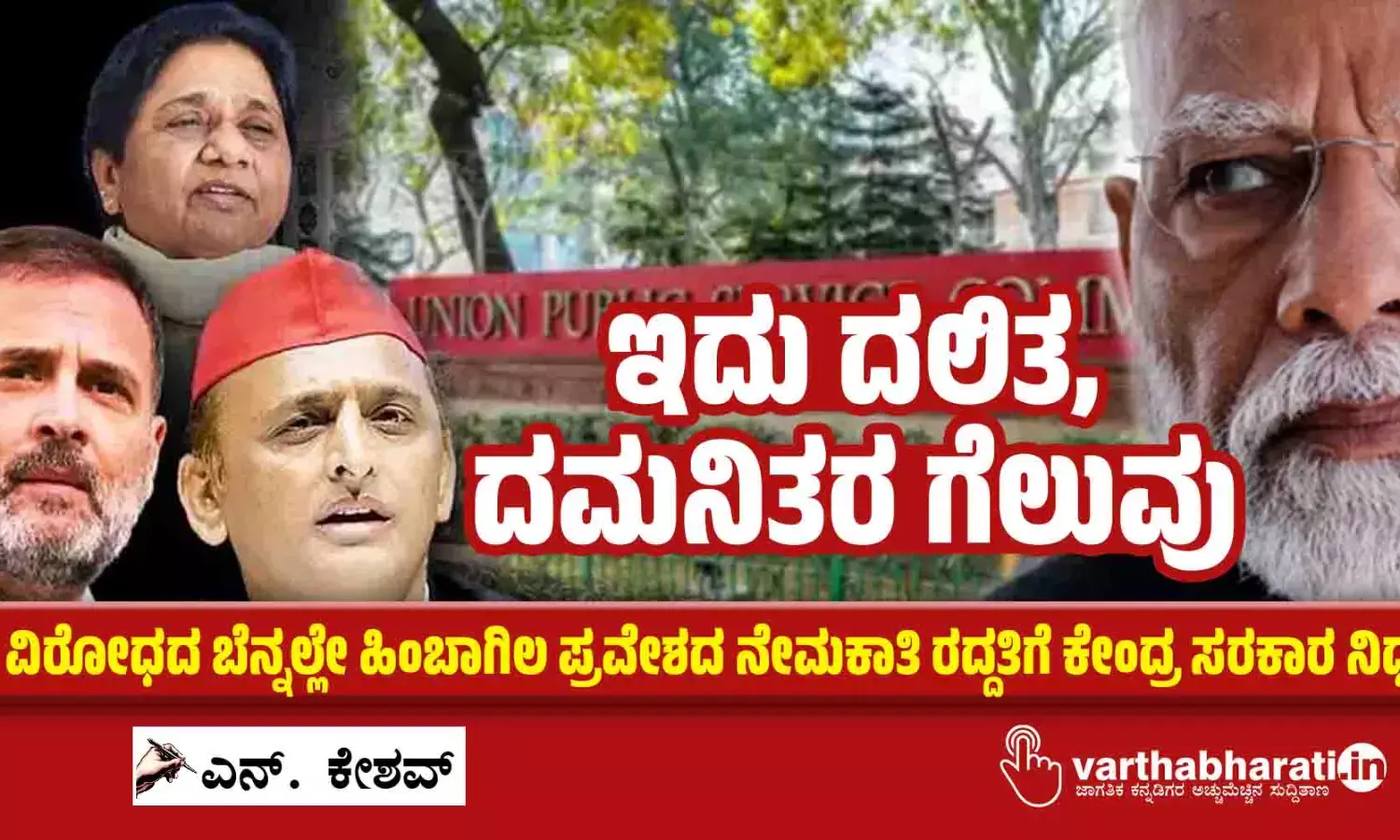 ಶನಿವಾರವಷ್ಟೇ ಯುಪಿಎಸ್ಸಿ ಅಂದರೆ ಕೇಂದ್ರ ಲೋಕಸೇವಾ ಆಯೋಗದ ಜಂಟಿ ಕಾರ್ಯದರ್ಶಿ, ಉಪ ಕಾರ್ಯದರ್ಶಿ ಮತ್ತು ನಿರ್ದೇಶಕ ಶ್ರೇಣಿಯ 45 ಹುದ್ದೆಗಳಿಗೆ ಲ್ಯಾಟರಲ್ ಎಂಟ್ರಿಗಾಗಿ ಅರ್ಜಿ ಆಹ್ವಾನಿಸಿತ್ತು. ಗುತ್ತಿಗೆ ಆಧಾರದ ಮೇಲೆ ಇವುಗಳನ್ನು ಸೆಪ್ಟಂಬರ್ 17ರೊಳಗೆ ಭರ್ತಿ ಮಾಡಲು ಮುಂದಾಗಿತ್ತು.