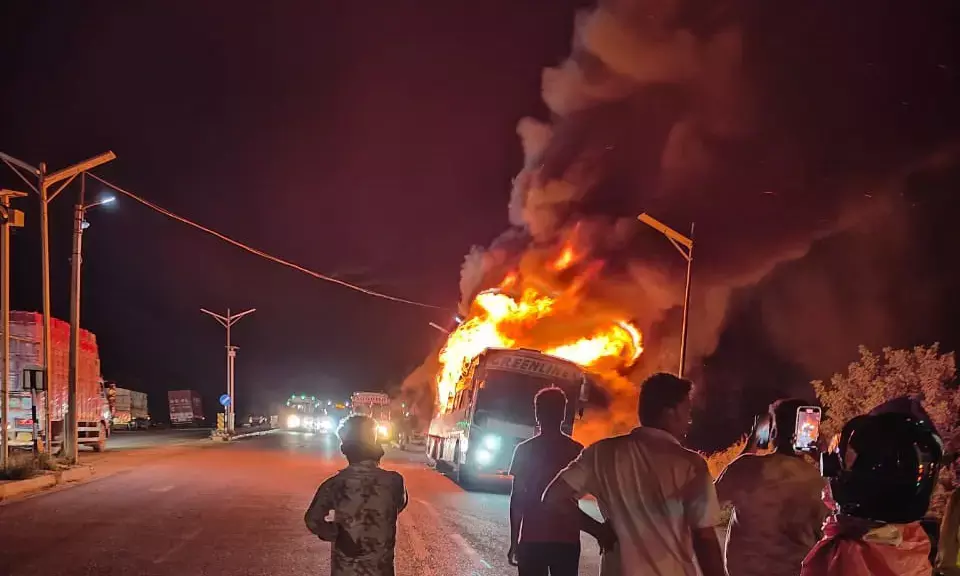 ಅನಂತಪುರದಲ್ಲಿ ಹೊತ್ತಿ ಉರಿದ ಖಾಸಗಿ ಬಸ್: ಸ್ವಲ್ಪದರಲ್ಲಿ ಪಾರಾದ ಪ್ರಯಾಣಿಕರು