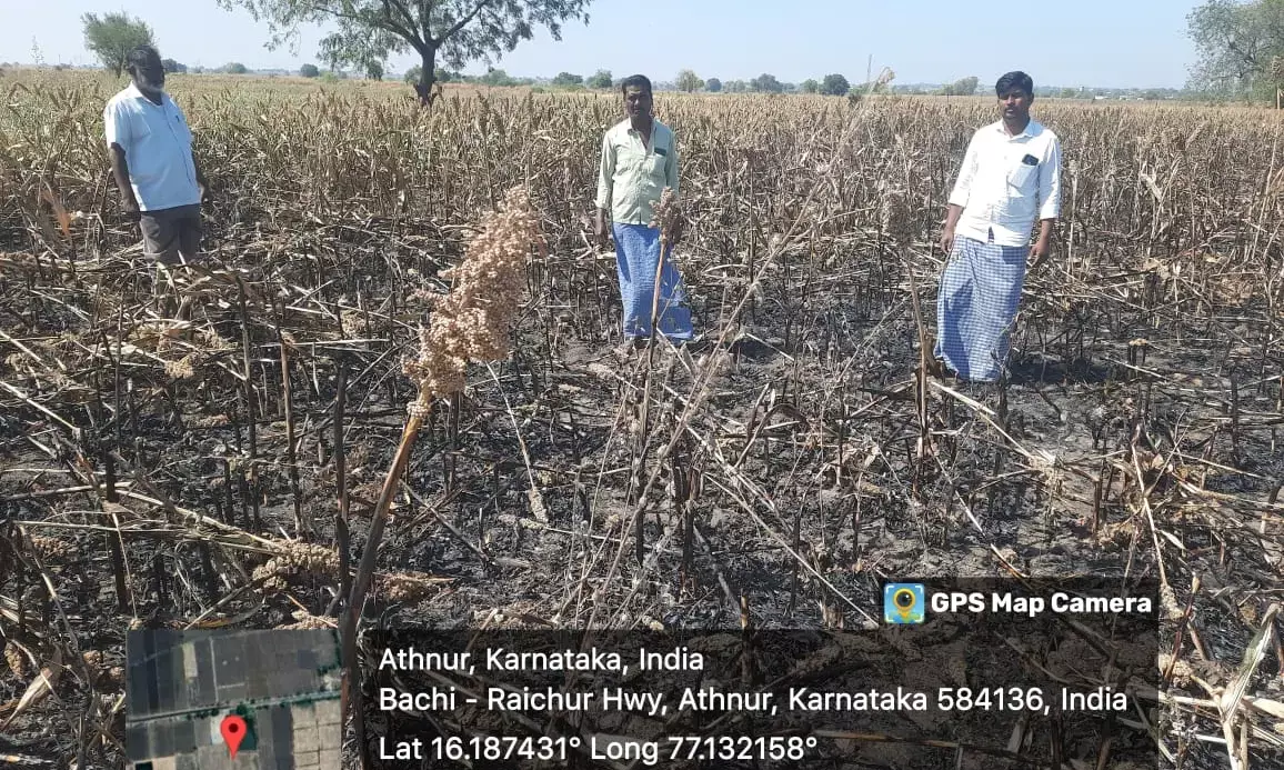 ಜೋಳದ ಬೆಳೆಗೆ ಬೆಂಕಿ ತಗುಲಿ ನಷ್ಟ ಅನುಭವಿಸಿದ ರೈತರಿಗೆ ಸೂಕ್ತ ಪರಿಹಾರ ಒದಗಿಸಬೇಕು ಎಂದು ರೈತರು ಆಗ್ರಹಿಸಿದ್ದಾರೆ.