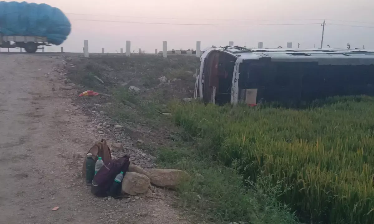 ರಾಯಚೂರು: ಹೊಸಪೇಟೆಯಿಂದ ಹೈದರಾಬಾದ್ಗೆ ತೆರಳುತ್ತಿದ್ದ ಕೆಎಸ್ಆರ್ಟಿಸಿ ಸ್ಲೀಪರ್ ಕೋಚ್ ಬಸ್ ನಗರದ ಹೊರವಲಯದ ಸಾತ್ಮೈಲ್ ಬಳಿ ರವಿವಾರ ತಡರಾತ್ರಿ ಪಲ್ಟಿಯಾಗಿ 13 ಪ್ರಯಾಣಿಕರು ಗಾಯಗೊಂಡಿದ್ದಾರೆ.