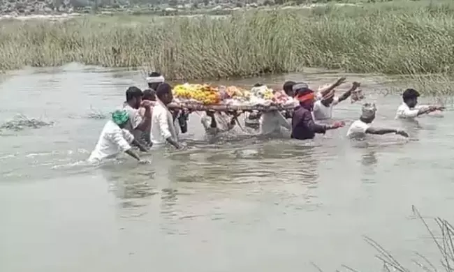 ರಾಯಚೂರು |ಮುಕುಂದ ಗ್ರಾಮದಲ್ಲಿ ಮೃತರ ಅಂತ್ಯ ಸಂಸ್ಕಾರ ನಡೆಸಲು ಹರಿಯುವ ನದಿ ದಾಟಿ ಹೋಗುವ ಪರಿಸ್ಥಿತಿ : ಸೇತುವೆ ನಿರ್ಮಿಸಲು ಒತ್ತಾಯ