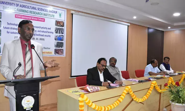 ರಾಯಚೂರು: ನೈಸರ್ಗಿಕ ಮತ್ತು ಸಾವಯವ ಕೃಷಿಯನ್ನು ಎಲ್ಲಿ ಅಳವಡಿಸಬೇಕು ಎಂಬುದನ್ನು ಸಂಶೋಧಕರು ವಿಮರ್ಶಾತ್ಮಕವಾಗಿ ಮೌಲ್ಯಮಾಪನ ಮಾಡಬೇಕು. ಅಲ್ಲದೆ ಸುಸ್ಥಿರ ಕೃಷಿ ಪದ್ಧತಿಗಳ ಕುರಿತು ಸಾರ್ವಜನಿಕರಿಗೆ ತಿಳಿಹೇಳಬೇಕೆಂದು ಕೃಷಿ ವಿಜ್ಞಾನಗಳ ವಿಶ್ವವಿದ್ಯಾಲಯದ ಕುಲಪತಿ ಡಾ.ಎಂ.ಹನುಮಂತಪ್ಪ ಅವರು ಹೇಳಿದರು.